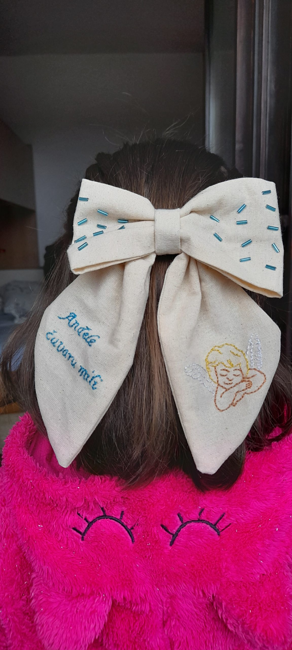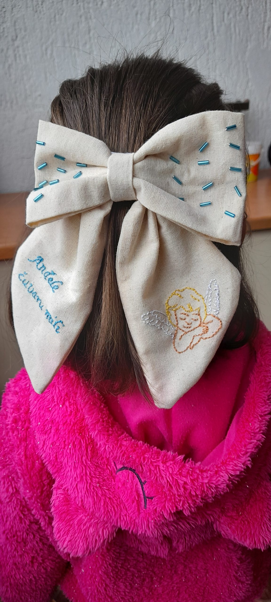 Dodajte dašak personaliziranog stila uz naše jedinstvene mašne za kosu s vezom! Savršene za djevojčice ili kao detalj za posebne prigode, mašne mogu nositi ime, simbol ili kratki tekst koji ih čini posebnima.